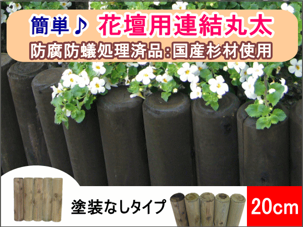 花壇 連結丸太長さ約200mm×φ50mm(5本連結)塗装なしタイプ【防腐防蟻処理品】【ガーデニング/丸太/杭/囲い/仕切り/土留め/柵/フェンス/国産/杉材/天然木/連杭/ストッパー/防腐】