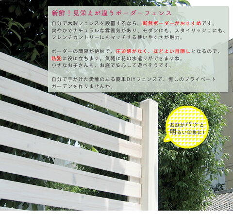 【ボーダーフェンス スプレッド(基本セット/土中用)】新鮮!見栄えが違うボーダーフェンス自分で木製フェンスを設置するなら、断然ボーダーがおすすめです。