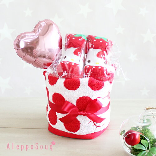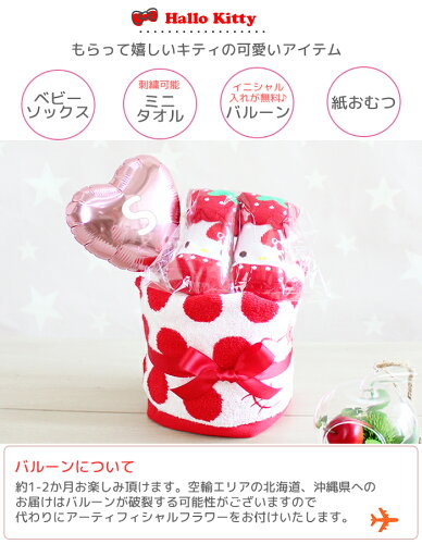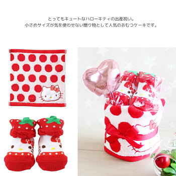 出産祝い いちごキティおむつケーキ 送料無料 即日発送 名入れタオル 刺繍可能 ベビーソックス 靴下 女の子 1歳 誕生日 パンパース メリーズ グーン60-80