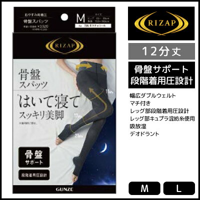 RIZAP ライザップ おやすみ用 着圧 骨盤スパッツ 12分丈 グンゼ GUNZE | レディース レディス 女性 婦人 スパッツ レギンス 夜用 夜 お休み おやすみ 就寝 睡眠 就寝用 骨盤 12分 着圧スパッツ 着圧レギンス 着圧レギンスパンツ 寝るとき 骨盤スパッツ 骨盤サポート トレンカ