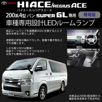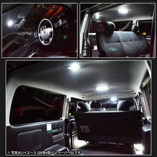 トヨタ ハイエース / レジアスエース 200系 4型 バン スーパーGL 専用 LEDルームランプセット キットトヨタ ハイエース / レジアスエース 200系 4型 バン スーパーGL 専用 超激明 純白 3chip SMD LEDルームランプ キット 専用工具付 業界最速!!車種専用設計!! フロントルームランプ、リアルームランプ、バックドアランプの豪華セット!! 新基準ビジネスパッケージ ハイエースに合った快適ルームランプ。