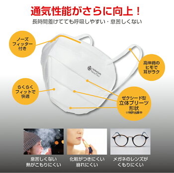 顔へのフィット性改善で外気の侵入を抑えウイルス飛沫・花粉・PM2.5などを効果的に遮断。