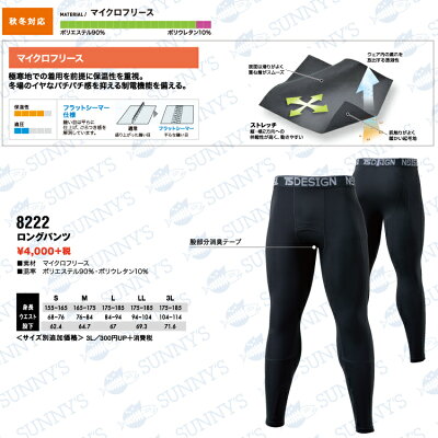 TS design【8222】ロングパンツ S-LL インナー 保温 透湿 制電 おしゃれ かっこいい デザイン 作業服 作業着 ティーエスデザイン 秋冬 激安 メンズ レディース S M L 2L 3L 4L 5Lサイズ【正規品】