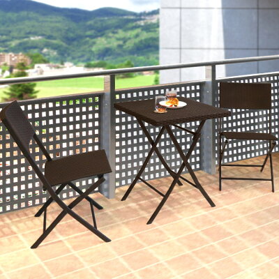 ラタン調 ガーデンテーブル セット 3点 ブラウン | インテリア おしゃれ 折りたたみ バルコニー 屋外家具 四角 アウトドア 庭 椅子 ガーデンチェア テーブルセット ベランダ 屋外 テラス ガーデンファニチャー ラタン ガーデンテーブルセット ファニチャー 家具 ガーデン家具